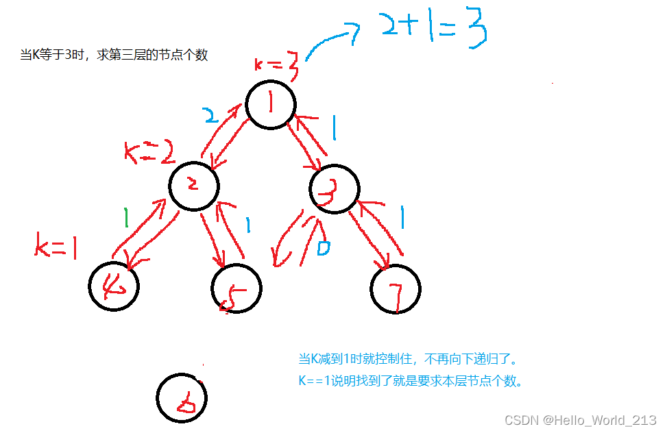 + BinaryTreeLevelKSize(root->rightchild, k - 1);