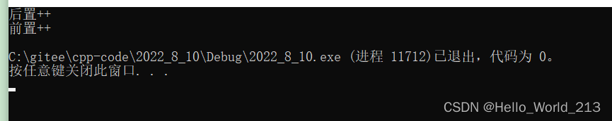 cout << "后置++" << endl;