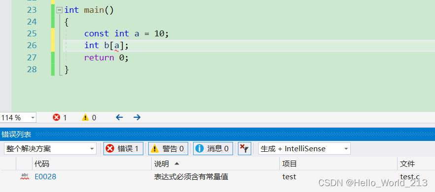 5).会退化成常变量(当用变量来初始化const修饰的常量时,该常量会退化变为常变量)