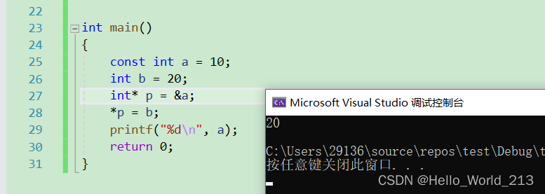 用const修饰的是常变量,本质上仍然还是变量,只是具有常性(即不可修改),既然本质是变量,就会给其分配相应的空间