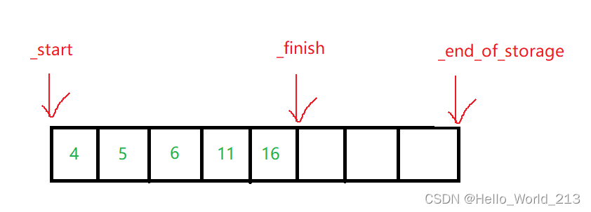 在STL源码中, vector数组并不是我们熟悉的在数据结构中的顺序表那样的形式实现的, 其属性而是用三个iterator定义的变量