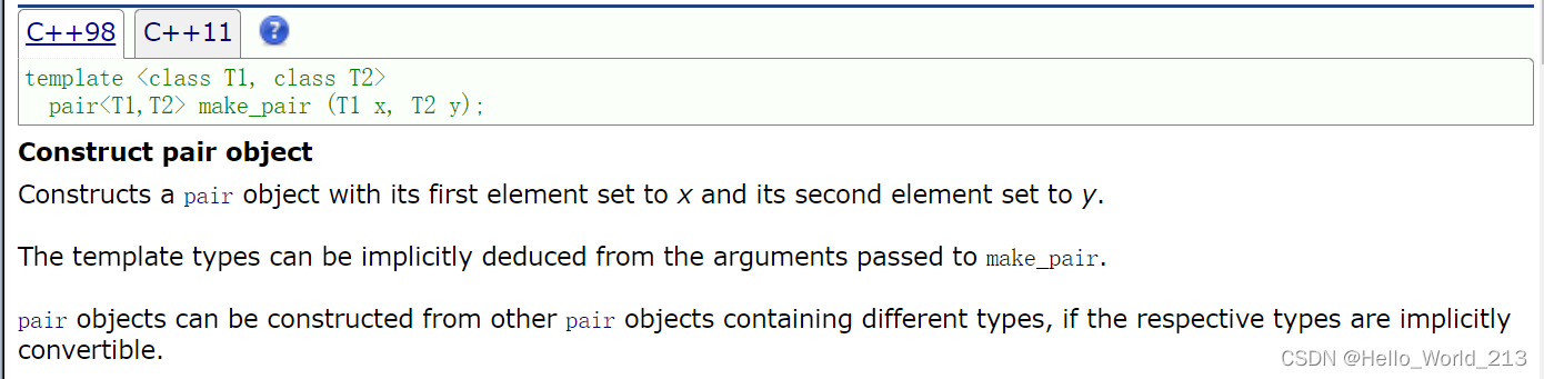 make_pair是C++提供的一个函数模板, 用来构建pair对象