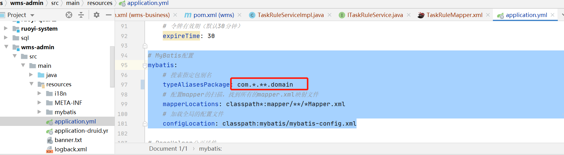 typeAliasesPackage: com.ruoyi.**.domain,com.nari.*.*.entity