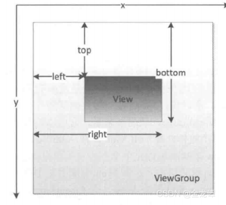 View的位置主要由他的四个顶点来决定,分别对应于View的四个属性:top、left、right、bottom,体重top是左上角纵坐标,left是左上角横坐标,right是右下角横坐标,bottom是右下角纵坐标。需要注意的是,这些坐标都是相对于view的父容器来说的,因此它是一种相对坐标。