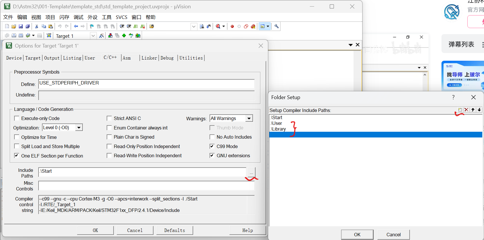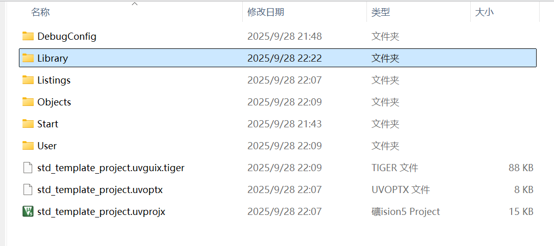 在项目文件夹下新建Library文件夹,用来存放库函数