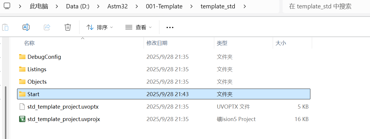 如下图所示,在工程文件夹下创建Start文件夹,将下列路径中提到的文件复制到Start文件夹中: