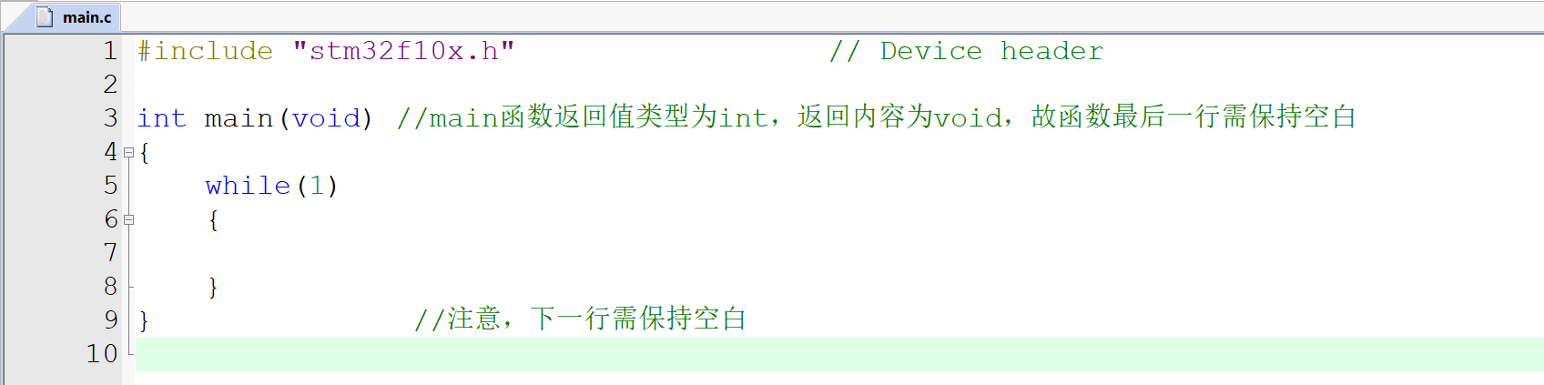int main(void) //main函数返回值类型为int,返回内容为void,故函数最后一行需保持空白