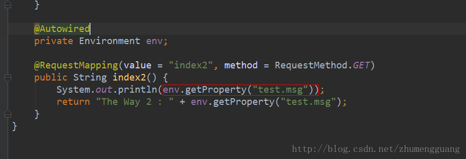 System.out.println(env.getProperty("test.msg"));