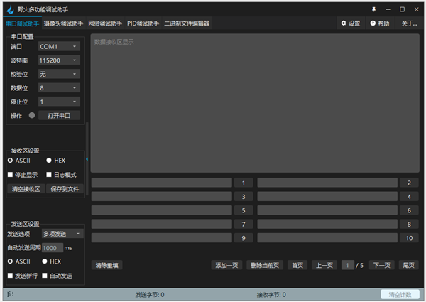 野火电子出品的多功能调试助手,包含串口调试、网络调试、摄像头调试、PID调试,二进制文件编辑等。该上位机工具使用Qt开发,界面相当漂亮,完全改掉大家对嵌入式小工具粗糙颜值的观感。