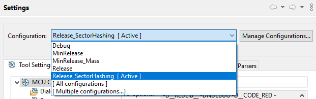 LPCXFlashDriverLib工程有很多build,可以根据ServiceMessages.c文件里的条件编译宏了解到它们的差异,其中Release_SectorHashing工程是默认选择用于最终生成.cfx的,这个build主要是利用32 bit Fowler/Noll/Vo FNV-1a哈希算法对每个Sector的数据下载做了校验。