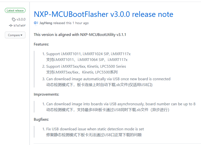 至此,这次更新的主要特性便介绍完了。MCUBootFlasher项目地址为 https://github.com/JayHeng/NXP-MCUBootFlasher , 虽然当前版本(v3.0.0)功能已经非常完备,你还是可以在此基础上再添加自己想要的功能。如此神器,还不快快去下载试用?