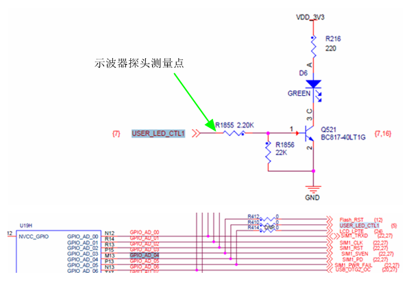 选定的板卡是恩智浦官方 MIMXRT1170-EVK,板卡上连接 LED 灯的是 GPIO_AD_04,翻看芯片参考手册,这个 PAD 既可以配到普通 GPIO(GPIO9[3] 或者 GPIO3[3]) 也可以配到 HSGPIO(CM7_GPIO3[3]),我们就选择这个 PAD 做测试。此外,最终 I/O 输出波形形态跟外围驱动电路也有关联,所以这里也有必要交待清楚: