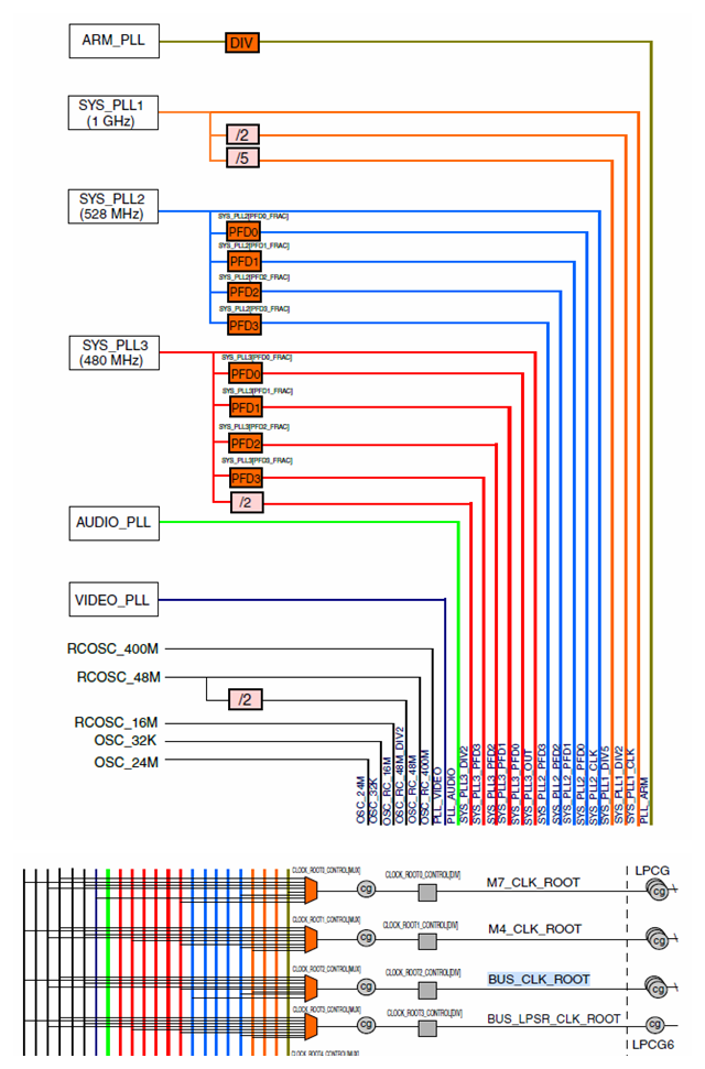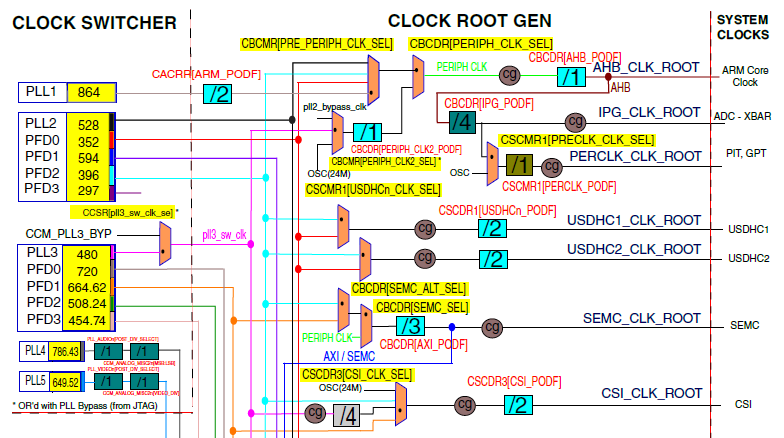 CCM->CLOCK_ROOT[0].CONTROL[MUX] = 3'b100,PLL_ARM_CLK