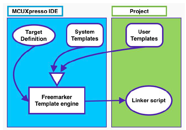 FreeMarker 是一个模板引擎(更通俗的说法其实就是链接文本的生成器),它集成在 MCUXpresso IDE 内部,由 MCUXpresso IDE 自动调用。MCUXpresso IDE 下最终的链接文件其实是由这个 FreeMarker 处理生成的。在 MCUXpresso IDE 软件内部有一组默认的系统模板(也叫根模板),它还支持用户提供的模板(这些模板均是用一种专用的语法 FTL 来描述的),所有适用工程的模板最终统一经过 FreeMarker 来处理。