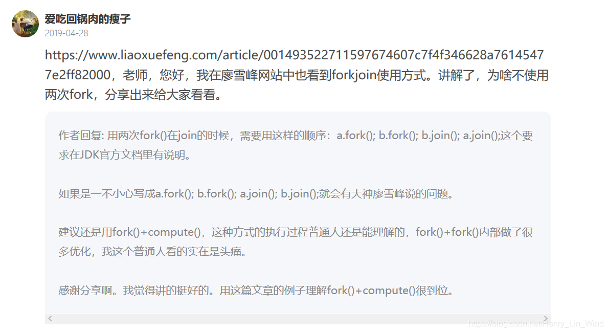 用两次fork()在join的时候,需要用这样的顺序:a.fork(); b.fork(); b.join(); a.join();这个要求在JDK官方文档里有说明。
