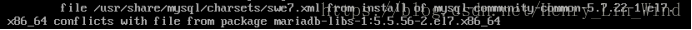 原因:已存在mariadb-libs-1:5.5.56-2.el7.x86_64的库(系统自带或者之前装错)所以需要先删除以前的库才能安装!