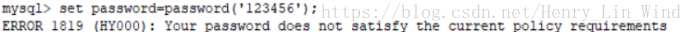 2、mysql> set global validate_password_policy=0; //把密码策略改位等级0