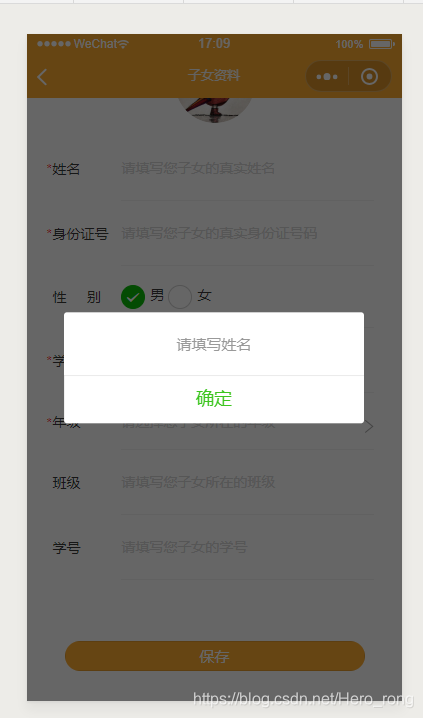 需求:小程序,个人资料的时候需要进行校验,如下图