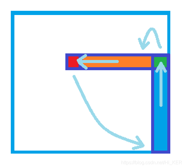 如图,我们发现如果红色那块要出队,共需要移动四块。我们发现种序列的移动可以用Splay来维护,仔细观察发现,水平有n行可能需要移动,而竖直只可能发生在最后一列,所以我们维护 n+1 个Splay,维护n个长度为m-1的序列,1个长度为n的序列。