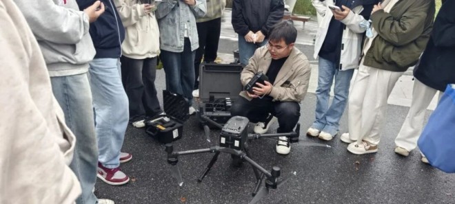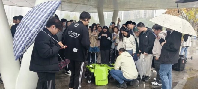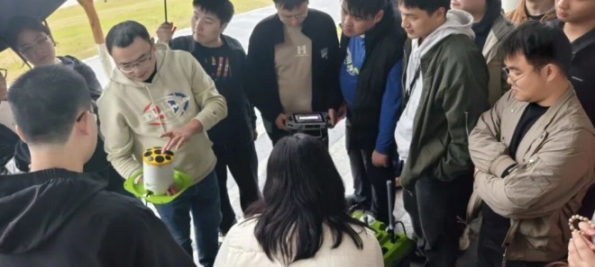 尽管雨水不断,师生们仍然专注地围站在演示区,认真记录设备操作流程与数据反馈,现场交流氛围热烈。技术人员逐一解答疑问,将理论知识与实操场景紧密结合,让参与师生对智能水文装备的应用有了直观认知。