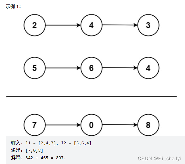 可以看出,两个输入的链表是逆序的,因此两个链表中同一位置的数字可以直接相加。
