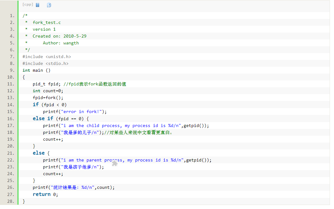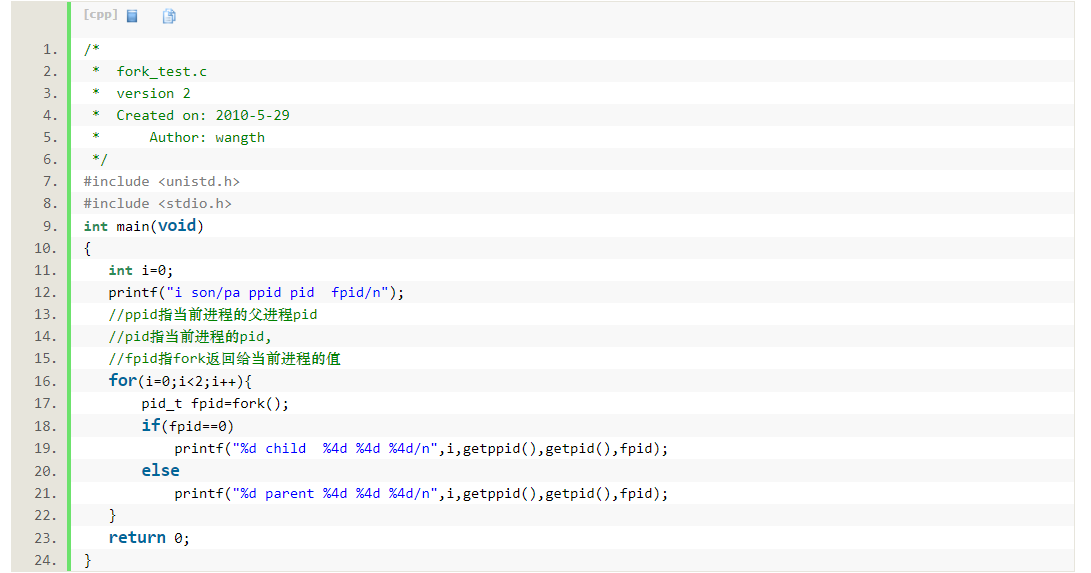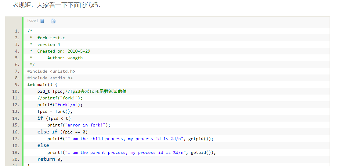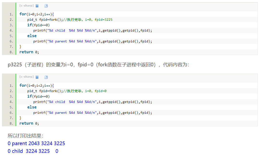 为什么两个进程的fpid不同呢,这与fork函数的特性有关。fork调用的一个奇妙之处就是它仅仅被调用一次,却能够返回两次,它可能有三种不同的返回值: