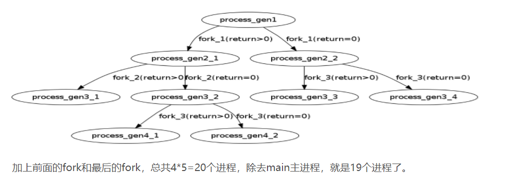 网上有人说N次循环产生2*(1+2+4+……+2N)个进程,这个说法是不对的,希望大家需要注意。