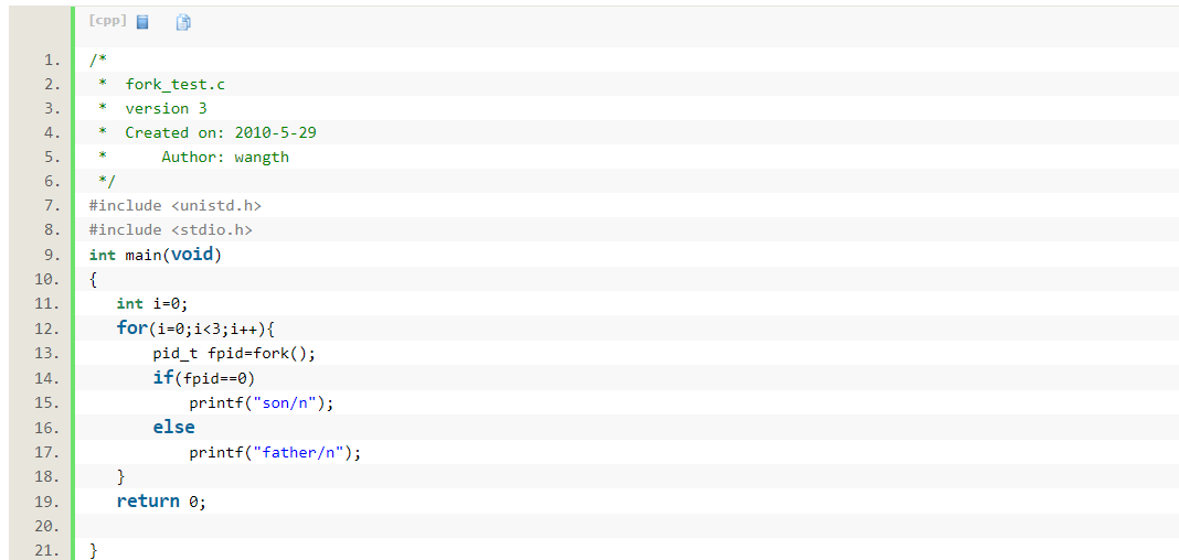 而运行printf("fork! /n")后,“fork!”被立即打印到了屏幕上,之后fork到的子进程里的stdout缓冲里不会有fork! 内容。因此你看到的结果会是fork! 被printf了1次!!!!