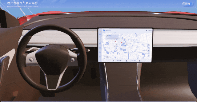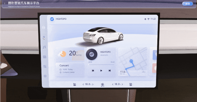 • 跨维度融合:通过 HT 自研渲染策略,实现 3D 中控台与 2D 控制界面的丝滑过渡,支持温度调节、音乐切换、导航设置等原生交互操作,还原真实驾驶舱体验。