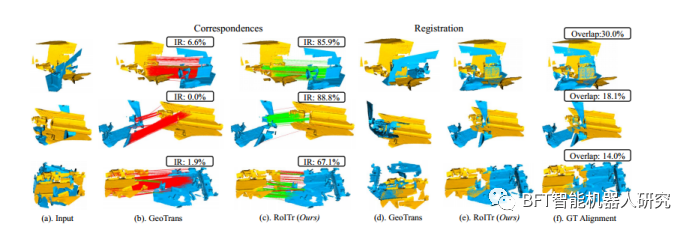 图2展示了在3DLoMatch数据集上的定性结果。