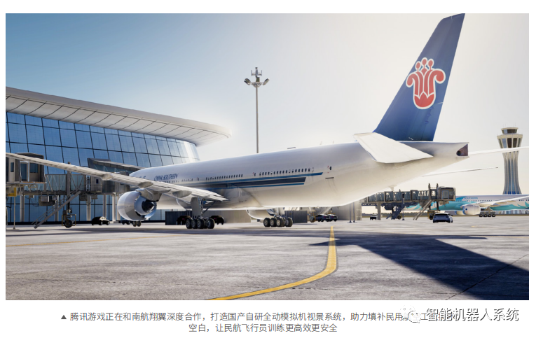自动驾驶仿真系统中普遍使用游戏引擎构建逼真的城市路网场景,50%的建筑行业专业人士已尝试使用游戏引擎作为渲染平台。工业制造领域也开始利用游戏技术助力构建可视化、智能化“数字化工厂副本”。游戏引擎可以增强传统工业软件在3D显示、智能交互等方面的能力,成为“新型工业软件”。例如,腾讯游戏正在和南航翔翼深度合作,基于腾讯自研游戏引擎能力,利用游戏资产制作流程和PCG(程序化内容生成)技术,打造国产自研全动模拟机视景系统,模拟飞机起飞、着陆、巡航等各个时段的拟真画面和实时动态,助力填补民用航空工业技术空白,让民航飞行员训练更高效更安全。