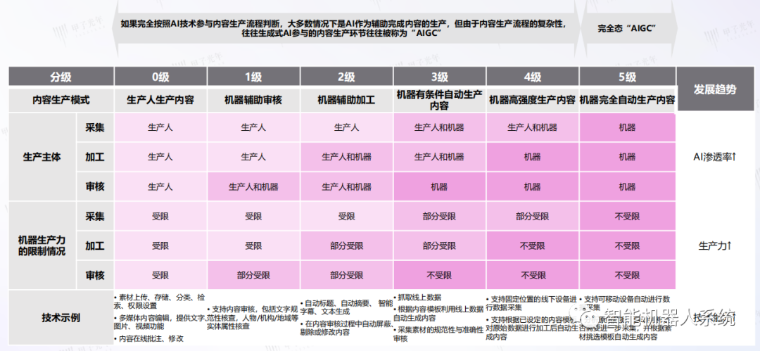 AIGC技术使得机器可以在内容生产过程中尽量实现“自动化”,减少人的工作量;AIGC技术进步使得机器越来越走向"自动化”,实现了“从无到有”。