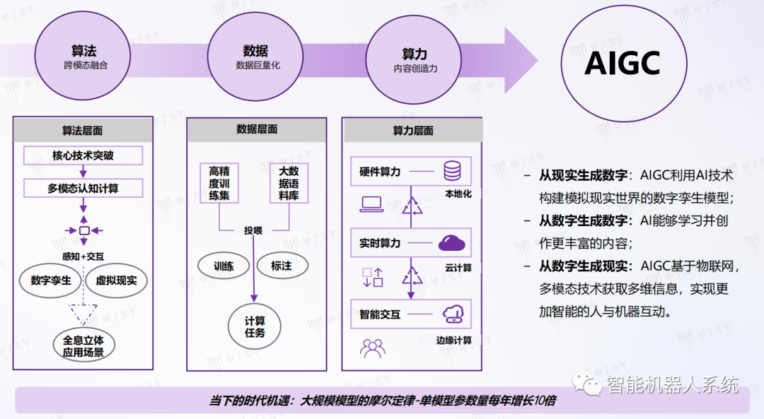 AIGC产业的发展来自于算法、数据及算力的综合推动