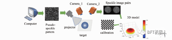 结构光投影三维成像目前是机器人3D视觉感知的主要方式,结构光成像系统是由若干个投影仪和相机组成,常用的结构形式有:单投影仪-单相机、单投影仪-双相机、单投影仪-多相机、单相机-双投影仪和单相机-多投影仪等典型结构形式。