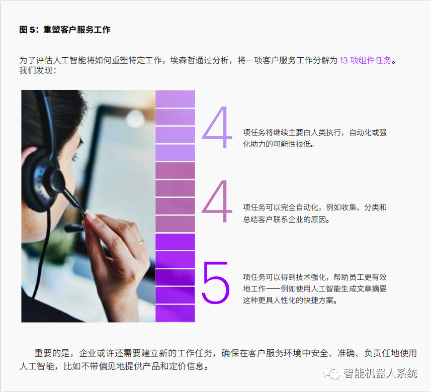 为了创造人工智能的价值,企业必须全面转变工作方式。企业领导者需要立即开始,用新的思路设计工作和任务、以及对人员开展技能再培训。最终,企业中的每一个角色都很可能被重塑,今天的工作将被分解为一组可以自动化完成或得到人工智能助力的任务,并重新构想人机协作的未来。