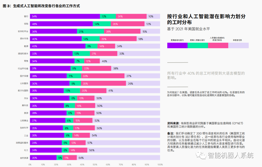 他们预见到大语言模型和生成式人工智能将如何从根本上改变商界、学术界乃至社会本身,开辟新的能力前沿。这些新技术对人类创造力和生产力产生了巨大的积极影响。例如埃森哲研究发现,所有行业中 40% 的工作时间都将得到 GPT-4 等大语言模型的协助。