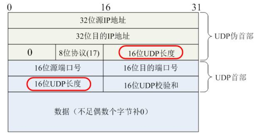 UDP检验和:计算时会临时增加一个伪首部(包括源IP、目标IP、UDP长度等)计算后删除