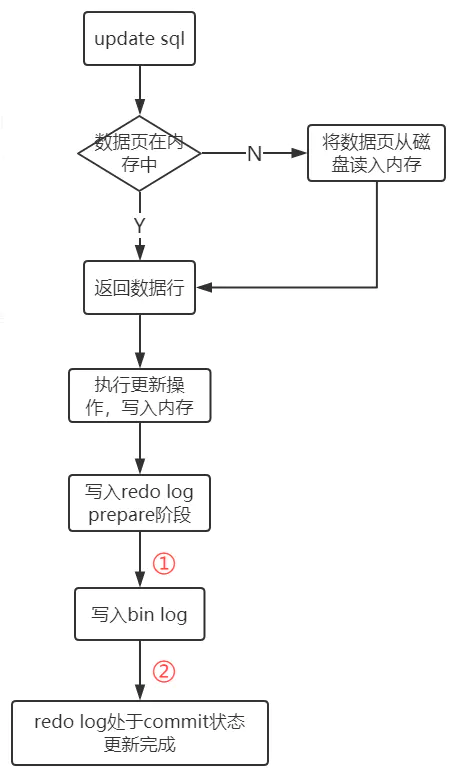 上图执行过程中,redo log分为prepare阶段和commit阶段,在写入binlog的前后执行,这就是二阶段提交。