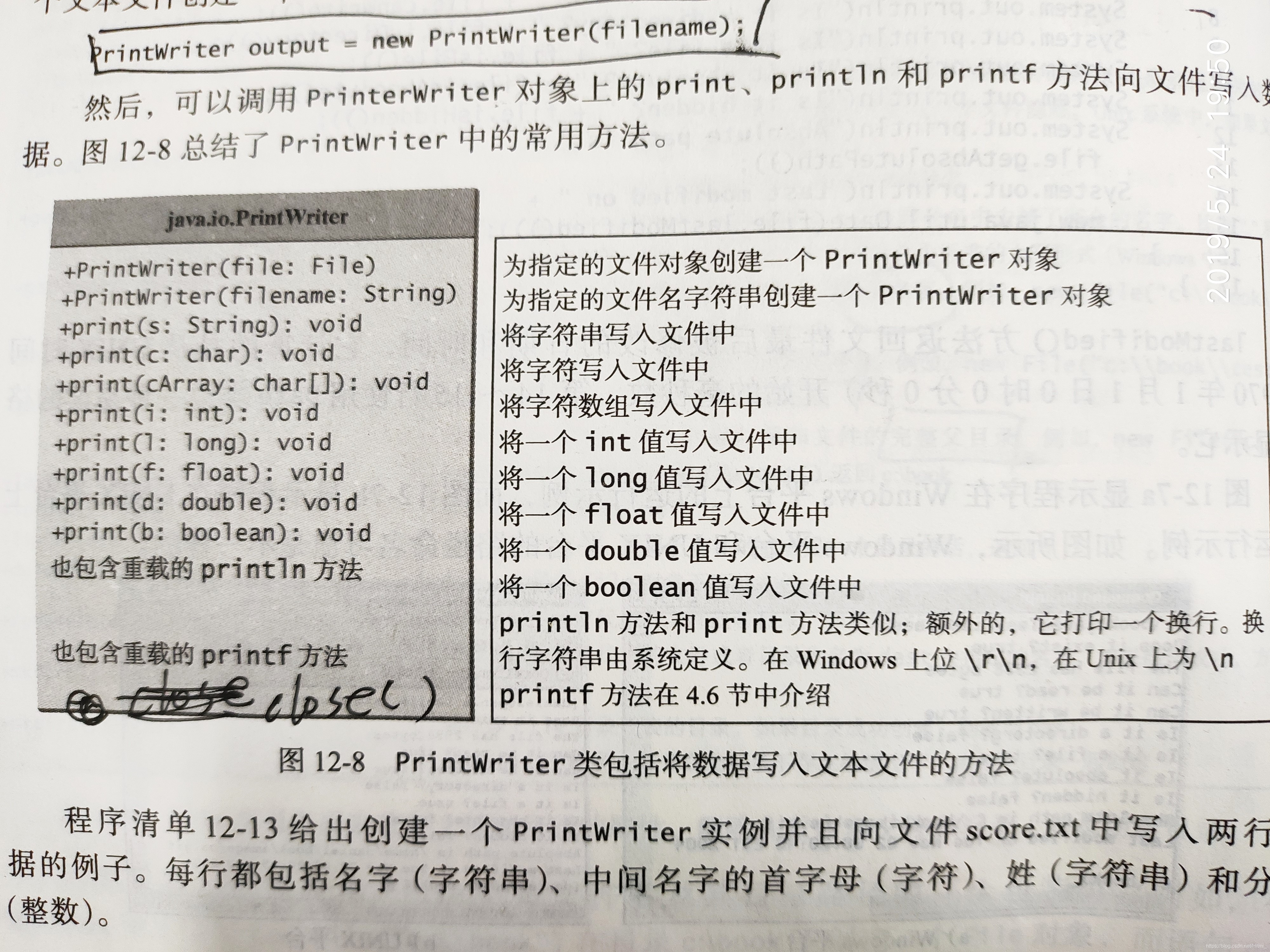 PrintWriter类可用来创建一个文件并向文本文件写入数据。 如下所示(来看从键盘输入数据的请不要着急,一步步看懂,马上讲)