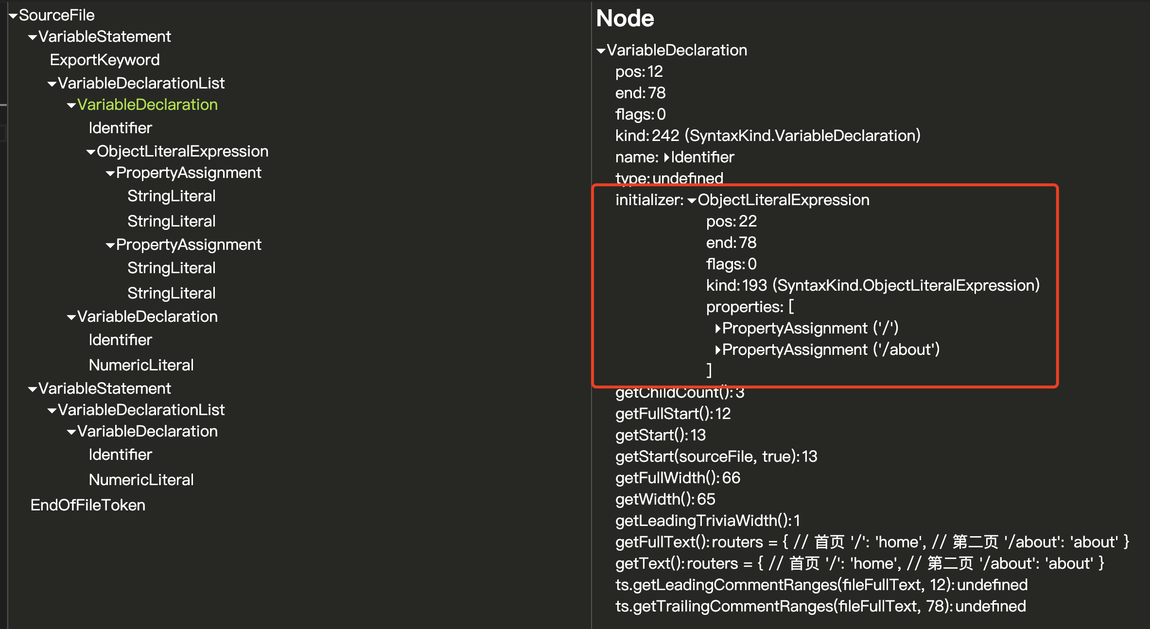 在如何对Initializer进行操作时,我最开始想到的是将其使用JSON.parse()转换成对象字面量,然后进行简单追加,后面发现这段内容里还可能包含注释,所以只能通过正则匹配确定字面量的“尾部部分”,然后进行匹配追加。