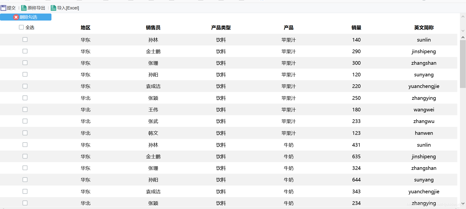 5、下面将做填报及删除测试,可以保留一份“销量原始数据”