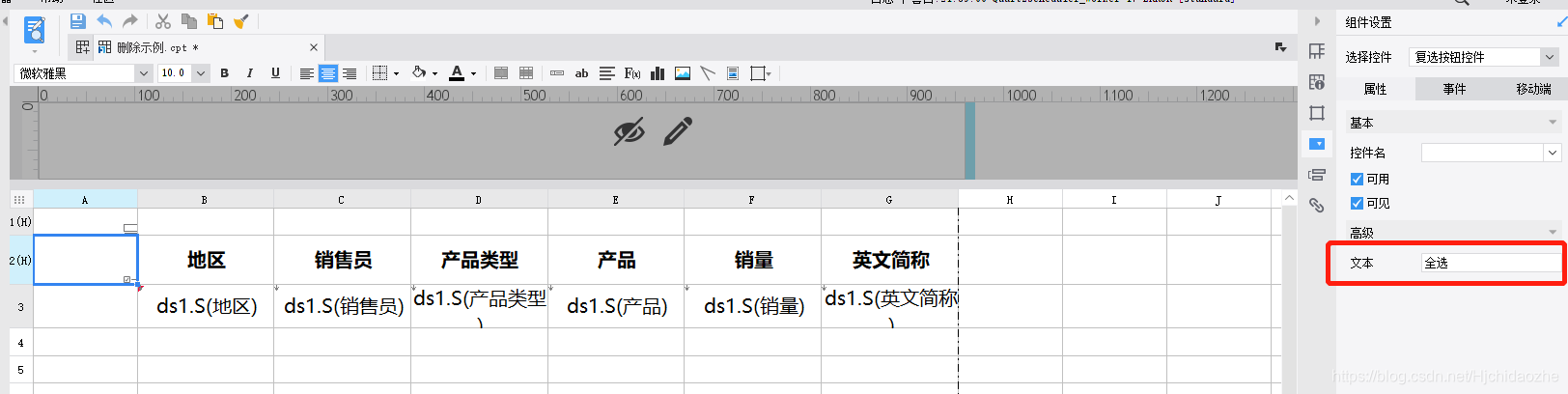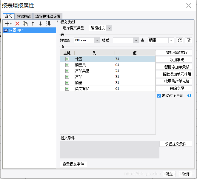 7、设置填报表、字段、单元格、主键等属性。填报表方式可以参考帆软官方文档等(这里主键全部字段,根据实际情况而定)