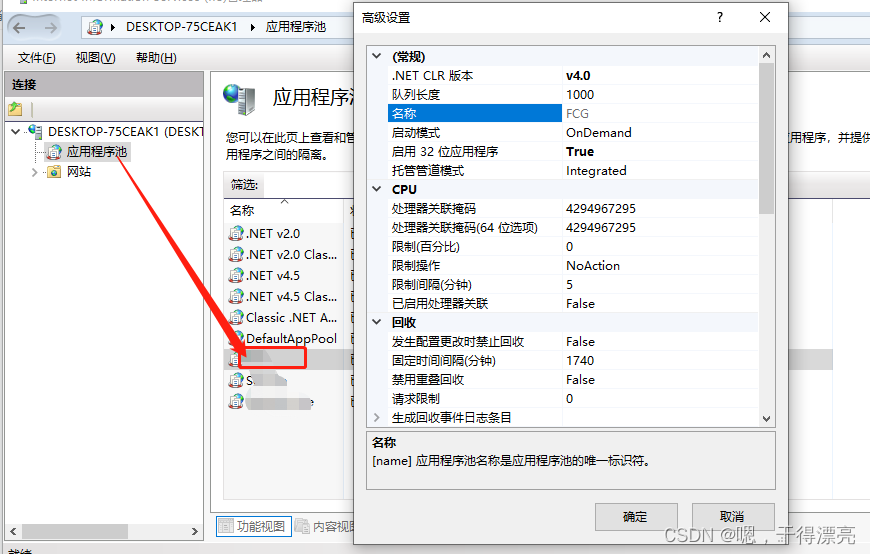 在弹出的高级设置中找到进程模式,修改闲置时间: