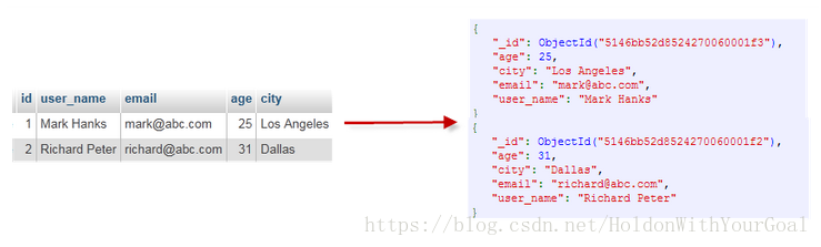 MongoDB文档类似于JSON对象,字段值可以包含其他文档、数组、以及其他数组。