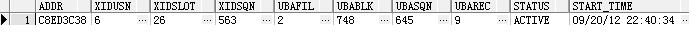 我们从v$lock_type对TX锁的描述,可以知道TX是和事务有关的.因此查看之前v$lock上TX锁的相关信息,可以看到ADDR的值与v$transaction的值是一样的.甚至可以根据ID1的值来计算,锁定的是哪个段:根据TX的ID1去除以和取余2的16次方,得到相关信息: