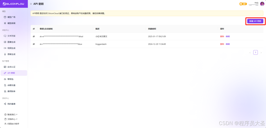 - 注册硅基流动账号。