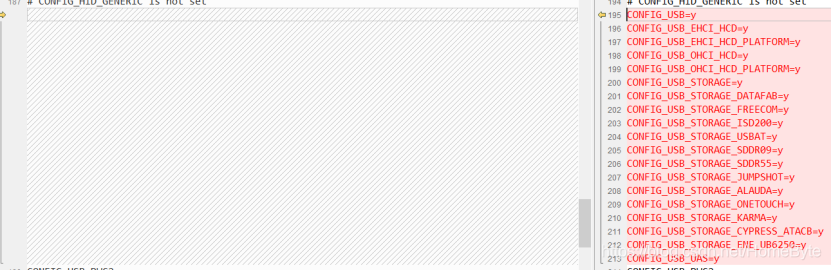 在目录~/share/patchs/udisk-config中,有一个配置文件,我们已经把U盘需要支持的选项加入进去,现在需要对比工程的区别,然后进行分析,可以通过beyond compare进行比较:
