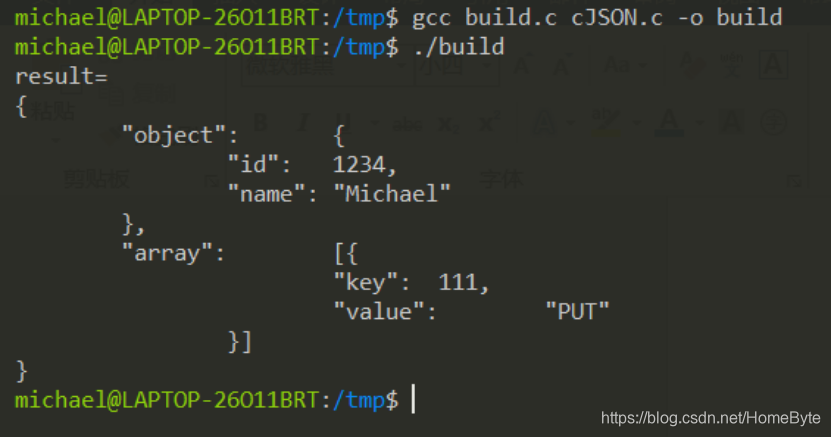 其中build.c是创建JSON数据的实例,parser.c是解析JSON的例子。