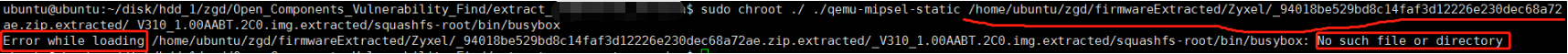Error while loading /home/ubuntu/zgd/firmwareExtracted/Zyxel/_94018be529bd8c14faf3d12226e230dec68a72ae.zip.extracted/_V310_1.00AABT.2C0.img.extracted/squashfs-root/bin/busybox: No such file or directory