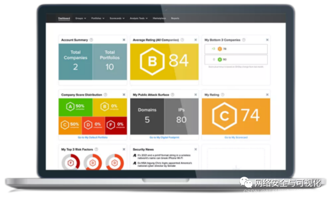虹科网络安全评级是一个安全评级平台,使企业能够以非侵入性和由外而内的方式,对全球任何公司的安全风险进行即时评级、了解和持续监测。获得C、D或F评级的公司被入侵或面临合规处罚的可能性比获得A或B评级的公司高5倍。